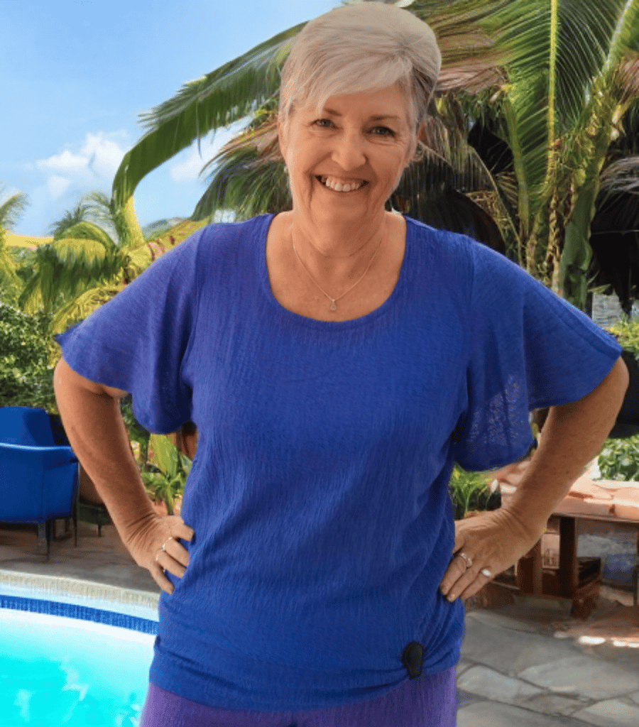 Bella has been designed to conceal those hips with several options from wearing loose or tucking, or using clever little magnetic clips to gather and ruche and create diagonal hemline