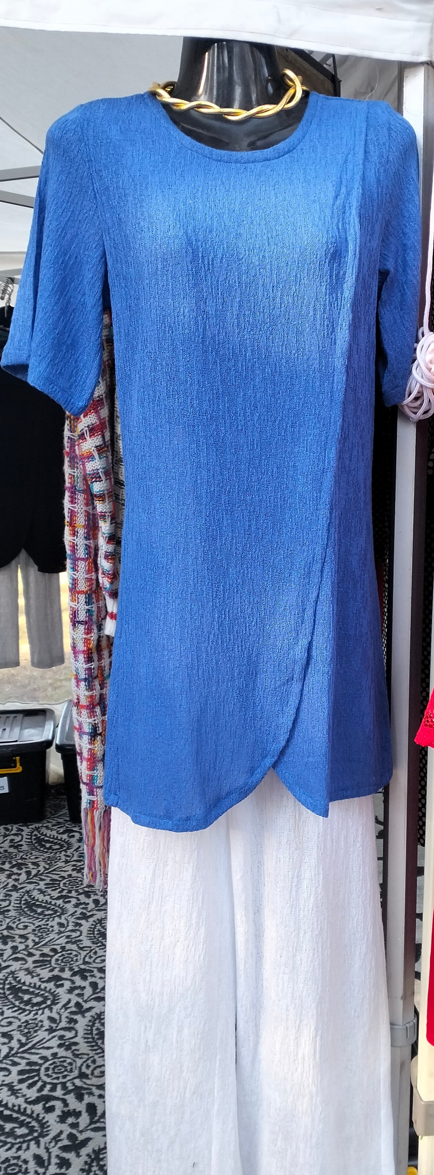 This long line top is very versatile and can be worn with pants or a pencil skirt. One of the best things about Petal is she is very forgiving around the tummy area as the crossover front means there is a little leeway for those not feeling so skinny days. The double front also means there is no need for a cami underneath the light colours such as white.